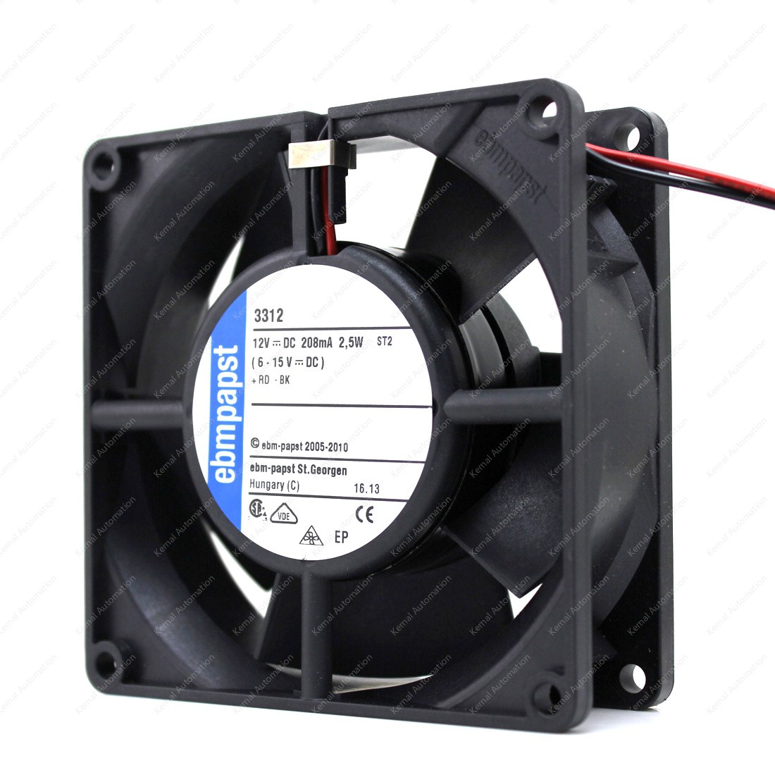 3312 ebmpapst Compact axial Fan 92*92*32mm ,Size(MM) 92*92*32,Voltage(V) 12,Operating Voltage(V) 6~15,Max Air Flow(CFM) 80,Power(W) 2.4,Speed(RPM) 3000RPM,Weight(g) 190