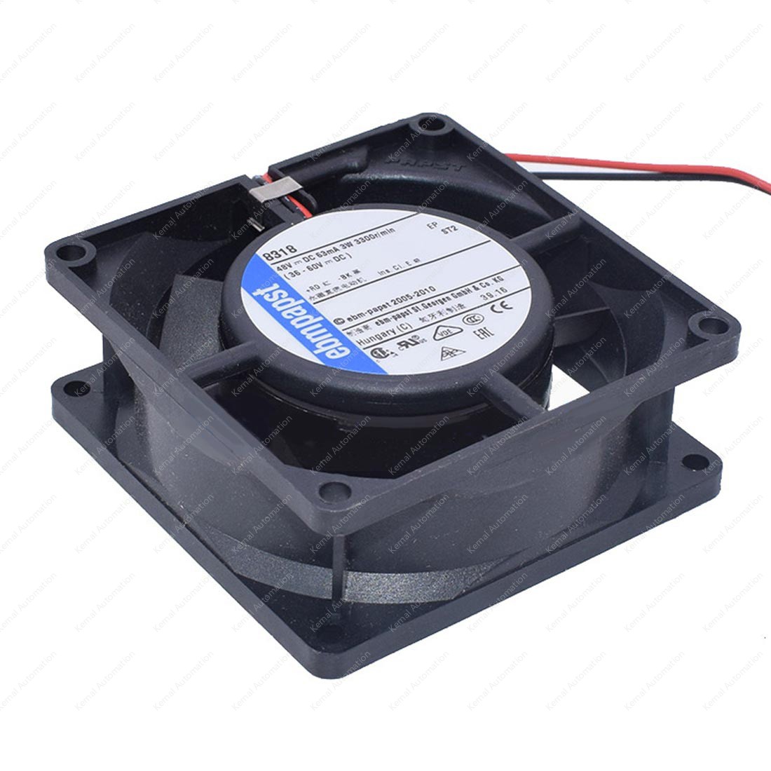 8318 ebmpapst Compact axial Fan 80*80*32mm ,Size(MM) 80*80*32,Voltage(V) 48,Operating Voltage(V) 36~60,Max Air Flow(CFM) 31.8,Power(W) 3,Speed(RPM) 3300,Weight(g) 170