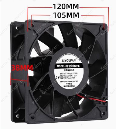 Voltage (VDC): 24VCurrent (A):2Power (W):48Rotational speed (RPM):5500Noise (dB):70Air Flow (CFM):252Bearing structure: double balls