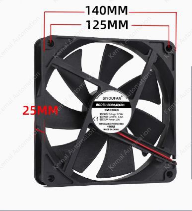 Voltage (VDC): 24VCurrent (A):0.42Power (W):10Rotational speed (RPM):3800Noise (dB):40Air Flow (CFM):133Bearing structure: double balls