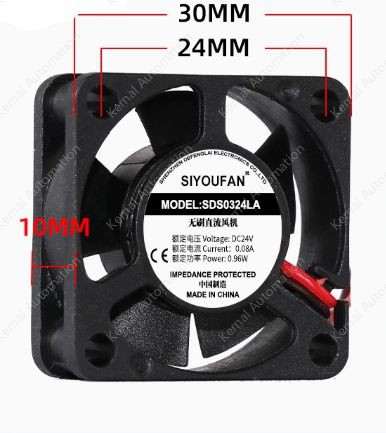 Voltage (VDC): 24VCurrent (A):0.08Power (W):0.96Rotational speed (RPM):7500Noise (dB):22Air Flow (CFM):2.8Bearing structure: oil-impregnated bearing
