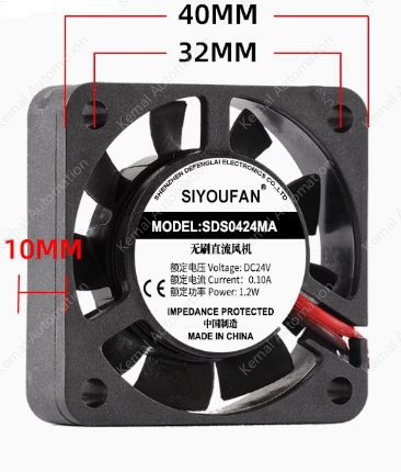 Voltage (VDC): 24VCurrent (A):0.1Power (W):1.2Rotational speed (RPM):7500Noise (dB):28Air Flow (CFM):7Bearing structure: oil-impregnated bearing