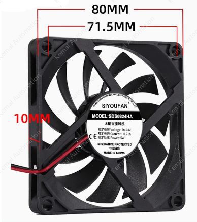 Voltage (VDC): 24VCurrent (A):0.21Power (W):5Rotational speed (RPM):2800Noise (dB):28Air Flow (CFM):28Bearing structure: oil-impregnated bearing