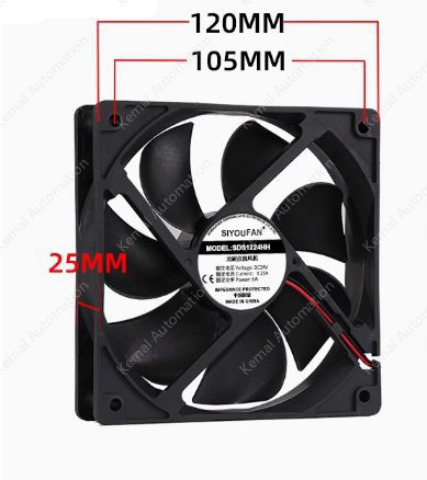 Voltage (VDC): 24VCurrent (A):0.21Power (W):5Rotational speed (RPM):2400Noise (dB):33.5Air Flow (CFM):73Bearing structure: oil-impregnated bearing