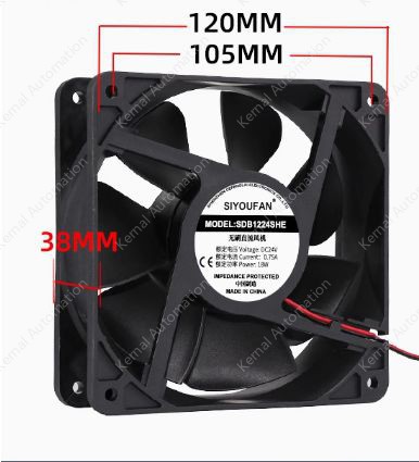 Voltage (VDC): 24VCurrent (A):0.75Power (W):18Rotational speed (RPM):3900Noise (dB):48Air Flow (CFM):152Bearing structure: oil-impregnated bearing