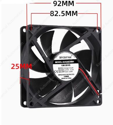 Voltage (VDC): 24VCurrent (A):0.12Power (W):2.88Rotational speed (RPM):2400Noise (dB):30Air Flow (CFM):35Bearing structure: oil-impregnated bearing