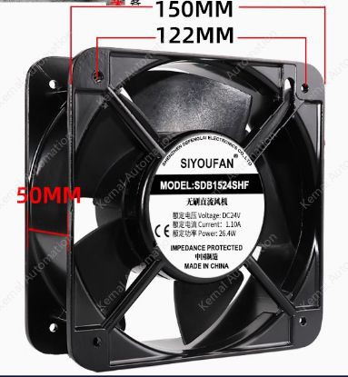 Voltage (VDC): 24VCurrent (A):1.1Power (W):26.4Rotational speed (RPM):3600Noise (dB):65Air Flow (CFM):300Bearing structure: double balls