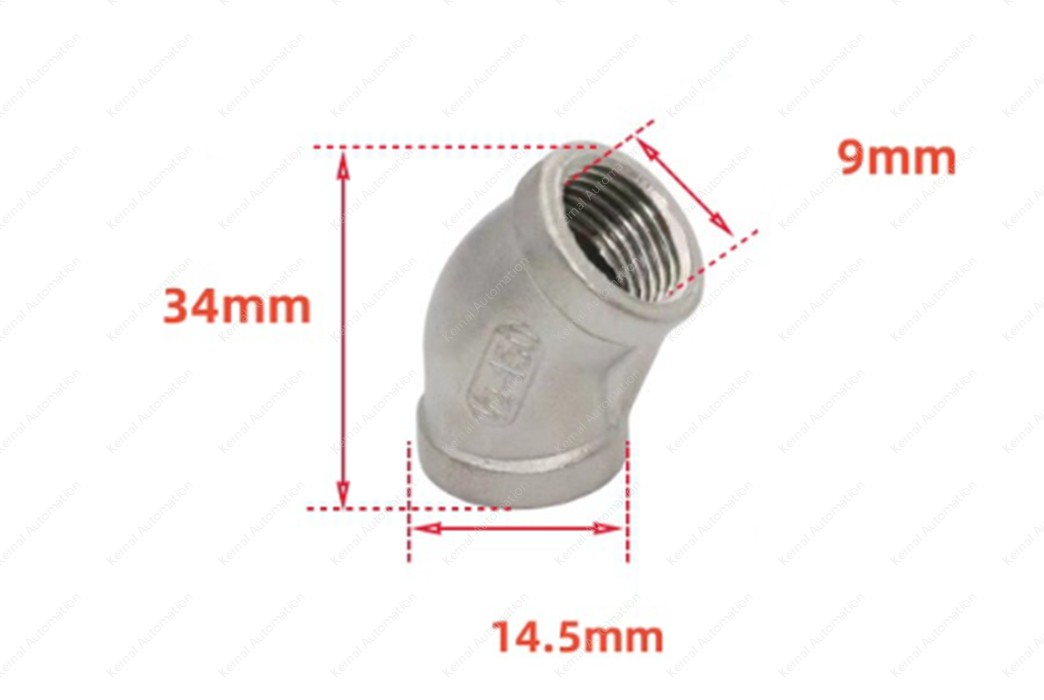 Stainless steel 45 degree elbow internal tooth straight bend joint internal thread buckle elbow plumbing fitting body is made of stainless steel, thickened design, more assured to use. Precision casting, after sun and rain, pleasant and fearless, corrosion, oxidation, high temperature resistance, longer service life.