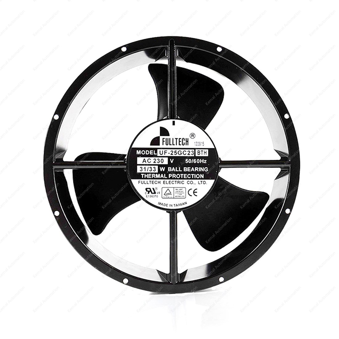 UF-25GC23BTH FULLTECH Axial Fan Ø254mm ,Size Ø254mm,Rated Voltage(V) 230 V,Frequency(Hz) 50/60 Hz,Input Power(W) 31/33 W,Rated Current(A) 0.14/0.14 A,Locked Current(A) 0.26/0.25 A,Speed(RPM) 1400/1650 RPM,Maximum Air Flow(m3/min) 13/15.5 m3/min.,Maximum Air Flow(CFM) 460/550 CFM,Maximum Pressure(mmH2O) 8/10 mmH2O,Maximum Pressure(InchH2O) 0.32/0.4 InchH2O,Noise(dB) 55/52 dB,Weight(g) 1900,Bearing Ball