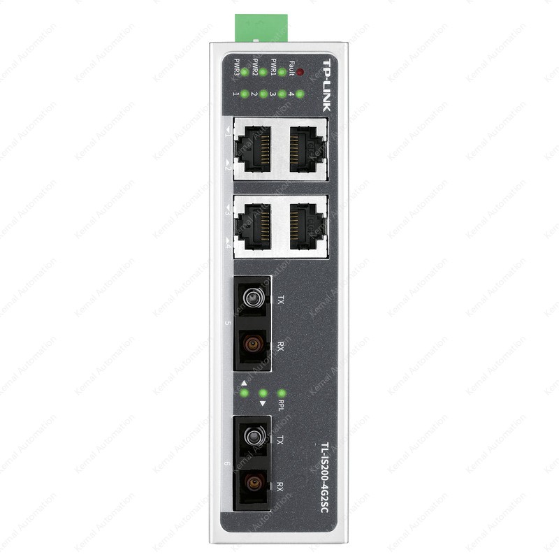 TL-IS200-4G2SC is a TP-LINK industrial Ethernet switch designed for industrial environments, providing 4 Gigabit adaptive Ethernet interfaces and 2 pairs of Gigabit single-mode dual-fiber SC fiber ports.