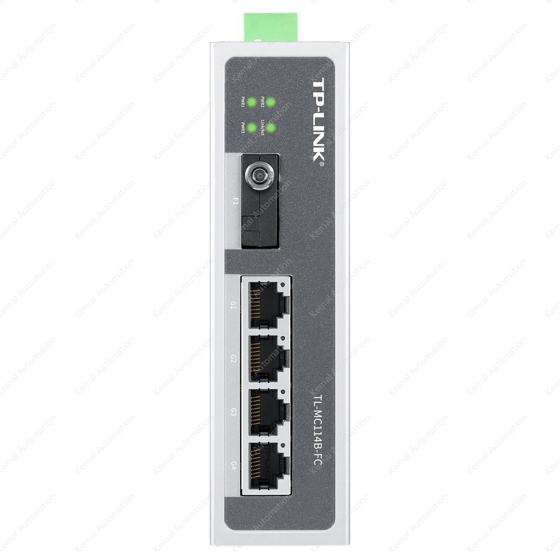 TL-MC114B-FC Industrial Grade is TP-LINK's industrial fiber optic transceiver designed for industrial environments. It provides 1 100 Gigabit SC optical interface and 4 100 Gigabit adaptive Ethernet ports. 1 100 Gigabit FC optical interface, 4 100 Gigabit RJ45 ports Operating wavelength: 1310nm (transmit), 1550nm (receive) Industrial working temperature: -40°C~75°C Wide voltage input: 9.6V~60VDC Small size (137 mm *100 mm *38 mm), better adaptable to industrial environment Multiple installation methods: rail installation + wall mounting IP30 protection: reduce the impact of dust VLAN and broadcast storm suppression switches are provided to adapt to various complex network environments Aluminum alloy shell, sturdy and durable Three-way power input, redundant backup, greatly improve the reliability of product power supply EMC high protection level, not afraid of all kinds of harsh environments *Industrial fiber optic transceivers do not come with a power supply at the factory, so please purchase them separately if you need to use them It is recommended to buy our industrial-grade power supply: TL-P12200A or TL-P24075 industrial grade Paired and used, it is easy to achieve 20KM long-distance lossless transmission TL-MC111A-FC industrial grade and TL-MC114B-FC industrial grade are 100 Gigabit single-mode single-fiber fiber optical fiber transceivers, which can convert electrical port signals and optical port signals after pairing, and carry out long-distance signal transmission through optical fibers, which are suitable for visual security, wireless networking, optical fiber access and other application scenarios.   -40°C~75°C working temperature design, no fear of extreme temperatures TL-MC114B-FC industrial grade is designed in strict accordance with the working temperature of -40°C~75°C, selected industrial-grade devices, and adopts natural heat dissipation mode to ensure that the equipment works stably for a long time in this temperature range and meets all kinds of harsh environments.   Industrial-grade protection design High-standard electromagnetic anti-interference protection design, suitable for various harsh electromagnetic environments such as electric power and industrial plants. Aluminum alloy shell and electroless nickel gold PCB board greatly improve the anti-corrosion performance of the equipment. The housing can be protected by IP30 to reduce the impact of dust on the normal operation of the equipment. 9.6V~60VDC wide voltage input, multiple power protection It supports simultaneous access of three power supplies, and the power supply is redundant to ensure the uninterrupted work of the equipment. It supports a wide voltage input of 9.6V~60VDC, and is suitable for various industrial power supplies. Three types of power protection are provided to greatly improve the reliability of power supply to the switch.   Featured devices The PCB board is made of electroless nickel gold plate, which has high corrosion resistance, oxidation resistance, and excellent electrical properties. Select high-specification and long-life Japanese capacitors to greatly improve the service life of the product. The circuit design of the highly redundant system avoids the sudden change of the external environment from affecting the normal operation of the equipment. TP-LINK's rigorous industrial-grade production and testing process is adopted to effectively release the electrical stress of components and greatly improve the reliability of equipment.   Compact body design, metal shell, efficient heat dissipation The size of the fuselage is only 137mm*100mm*38mm, which can be very convenient to place in a compact work cabinet, and the high thermal conductivity aluminum alloy shell has better heat dissipation effect.   DIN rail installation is easy and flexible The TL-MC114B industrial grade can be easily installed on DIN rail and wall mounted, and the installation method can be flexibly selected according to needs, making the use of industrial-grade Ethernet switches simple and reliable.