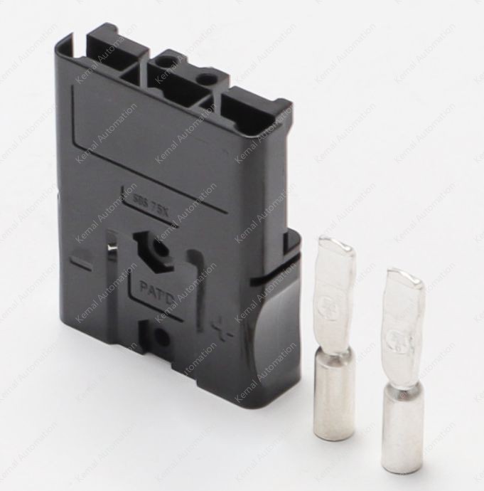 Plug 75A600V three-pole socket lithium battery connection plug forklift power connectorInstallation Type: DCRated current A: 75XRated voltage V: 600Contact Material: Copper silver-platedHousing Material: PCWire gauge minimum: 2.5Wire gauge maximum: 10Rated voltage (V): 600Rated current (A): 75XSmall size, optional specifications, copper terminals, buckle design, complete specificationsWith the base, it is easy to use, the shell is smooth and burr-free, and it is accurate to match, saving time and effort, and long lifePC flame retardant shell does not spontaneously combust in case of open flame, and the shell is made of PC flame retardant material, which is safe, wear-resistant, and compressive, and ensures the stability of use in harsh environmentsThe thickened copper wiring is stronger, and the thickened silver plating greatly enhances the conductivity, which helps to not be easy to ignite when a large current passes