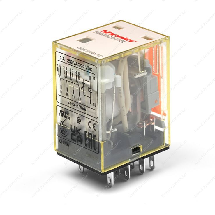 Model: RKM2CO548LNumber of contact groups: 2Contact form: conversionWiring: plug-inCoil voltage: 48VACRated current: 5AWith or without LED light: YesImpulse voltage: 4000V (altitude 2000m).Degree of protection: IP20Storage temperature/humidity: -55~+85°C/≤85%RHOperating temperature/humidity: -55~+70°C/5%~85%RH (non-condensing).Atmospheric pressure: 86~106KPaShock resistance: 10G (sine half-wave pulse: 11ms).Vibration resistance: 10~55Hz Double amplitude: 1.0mm