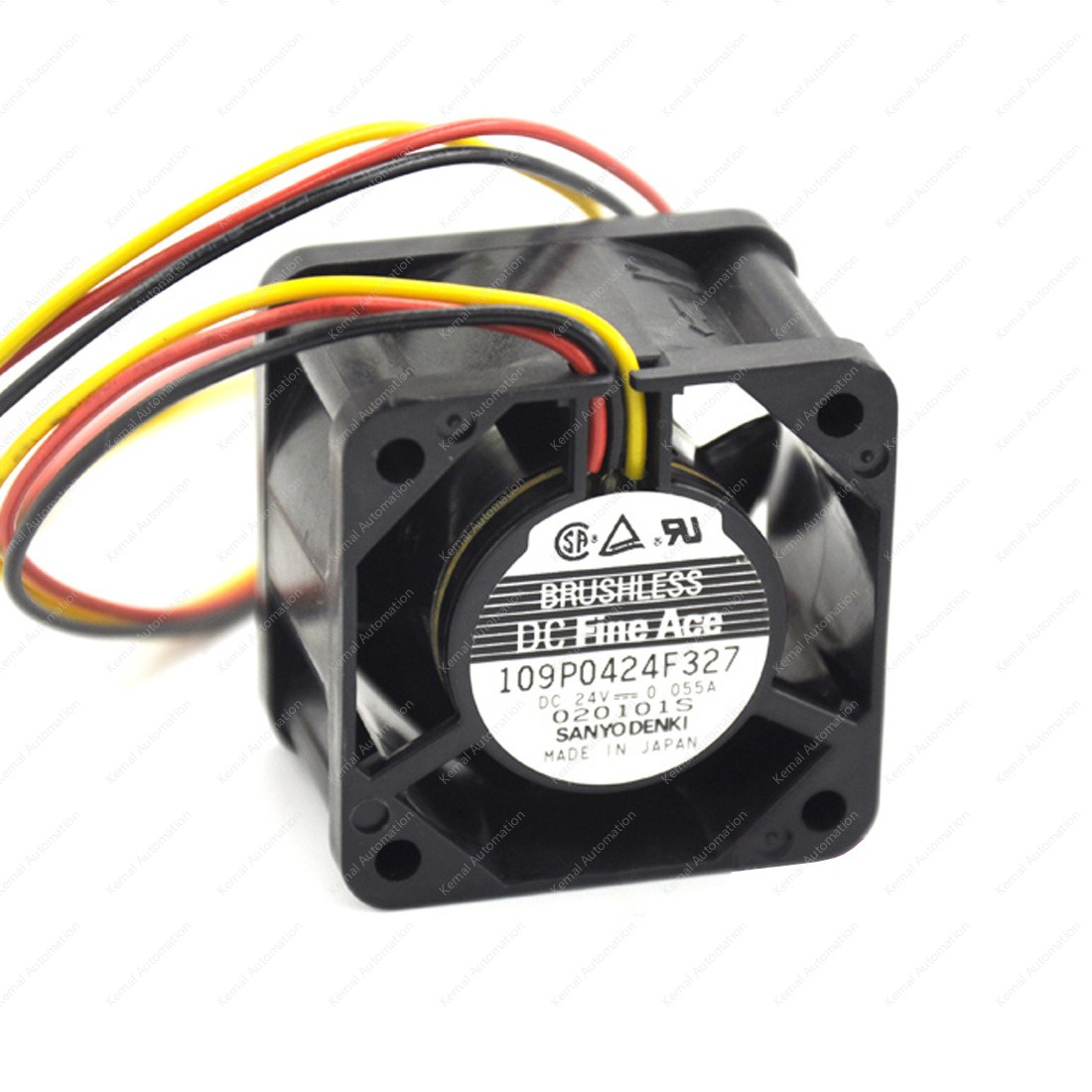 109P0424F327 SANYO DENKI DC Fan 40*40*28mm ,Size 40*40*28mm,Bearing BALL,Voltage(V) 24,Current(A) 0.055,Power(W) 1.32,Speed(RPM) 6700,Max Air Flow(CFM) 8.6,Max Static Pressure(Inch-H2O) 0.236,Noise(dB) 30,Weight(g) 52