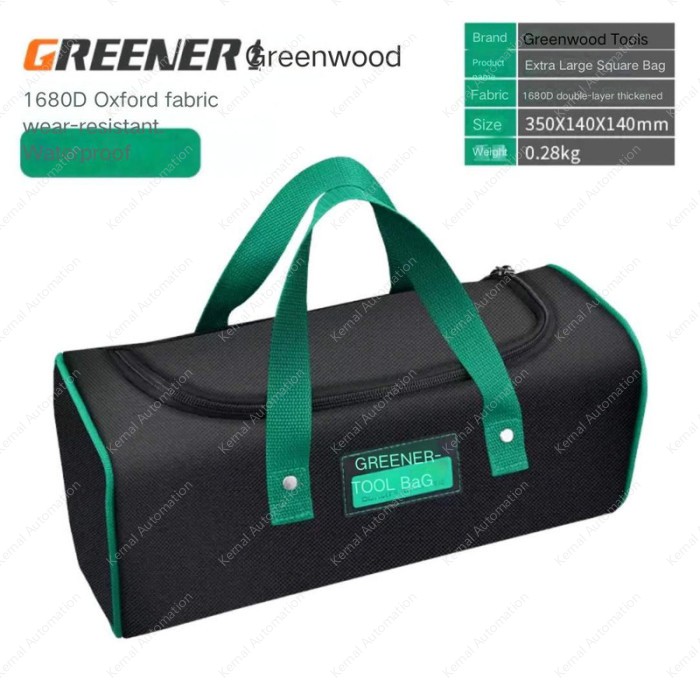 Abrasion/Water Resistant Greenwood Square Kit 1680D Oxford fabric Strict quality inspection, checks at all levels, multiple certifications, and big brands are more assured to use Preferred Fabric Waterproof Outer Layer 1680D Waterproof Fabric Built-in items are not easy to rust The fabric is high-density, puncture-resistant 1680D fabric upgrade has high density, thickened fabric, and is more wear-resistant Small size, large capacity, easy to carry, and common tools can basically be installed Industrial Metal Zipper Strong Smooth Zipper The material is thick Reinforced oxford handbags are sturdy and durable, and feel comfortable in the hand Rivet reinforcement Cross stitching more than double the load-bearing capacity The handbag is beautiful and practical to carry with you when you go out every day, without burden