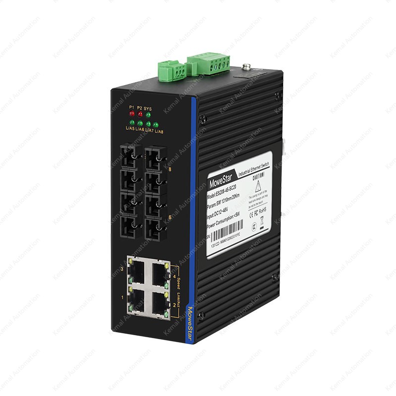 The industrial Ethernet switch adopts high-performance imported switching chip to ensure the stable transmission of large traffic data, and supports 10/100/100M adaptive electrical port; Support -40~85℃ operating temperature, industrial power protection, indicator status display, guide rail/rack installation, fan-less thermal housing design, to achieve real readout, convenient and fast, but also meet the EMC4 level protection, IP40 protection, 6000V lightning protection and other indicators, can adapt to a variety of harsh industrial environment application needs. ● Support 4 100M optical + 4 100M electricity configuration ● Support -40 ~ 85 ℃ wide temperature work ● IP40 protection, EMC4 level protection, 4000V lightning protection ● Aluminum alloy shell, DIN rail type installation ● Support power status relay alarm output ● Adopt industrial-grade power supply design, a variety of power supply schemes are optional, to meet the user's flexible application
